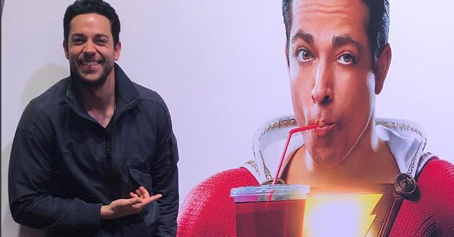 Production on SHAZAM! officially wrapped up earlier this month, but beyond a series of leaked photos from the set, we still haven't gotten an official look at Zachary Levi as the title character, until now. The actor spotted a bit of promotional material for his upcoming film at the Licensing Expo in Las Vegas, and saw fit to share the image with fans, which hopefully means that a more official reveal can't be far behind. What do you folks think?